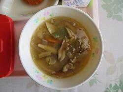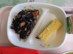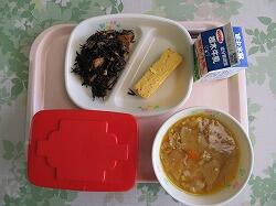 今日の給食は「たまご焼き」「ひじきと大豆の煮物」「巻き狩り汁」でした。