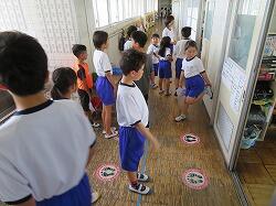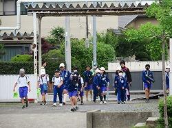 朝からまぶしい日差しが降り注いでいる中、東っ子たちが元気に登校してきました。