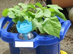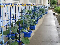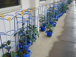 体育館の脇で、2年生が一人一鉢で作物を育てています。ぐんぐん伸びていました。たくさん収穫できるといいですね。