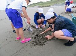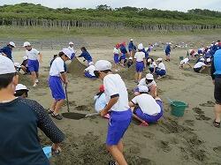 その後、少しの間、波と戯れる時間をとりました。東っ子の5年生たちは楽しそうに取り組んでいました。学校ではできない体験です。いい思い出になったと思います。
