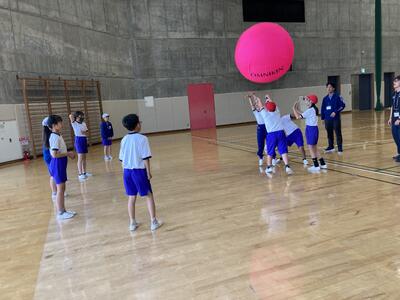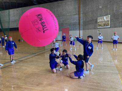 午後の二つ目の活動は、ニュースポーツ。キンボールとヘルスバレーボールを楽しみました。
