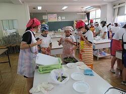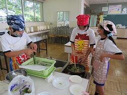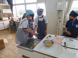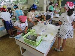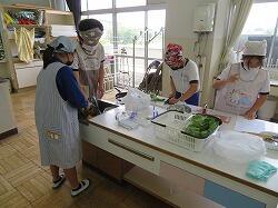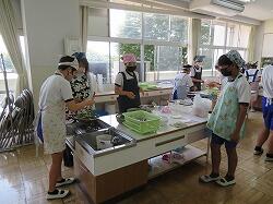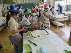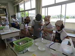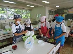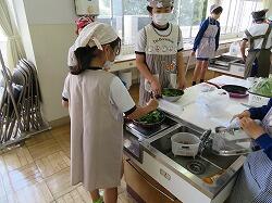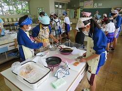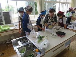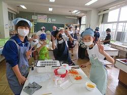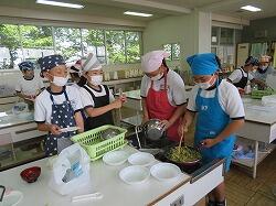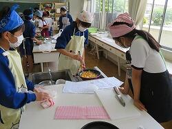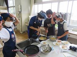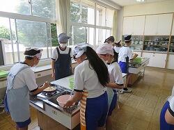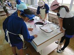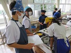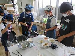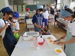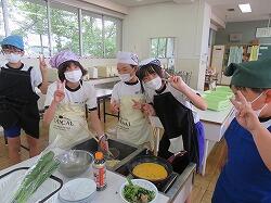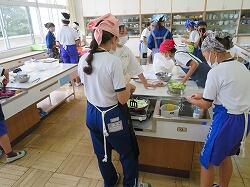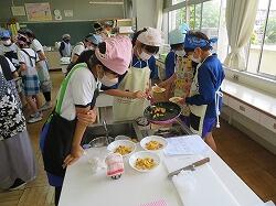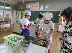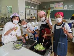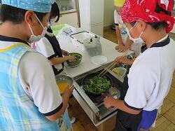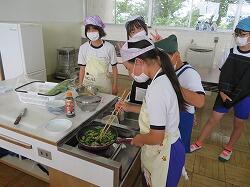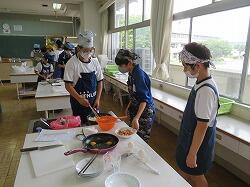 炒め物の学習です。野菜などを上手に切り、炒め物をしていました。中にはおっかなびっくりの子もいます。でも、経験することでできるようになってきます。学校で取り組んだことをいかして、家でも挑戦してみてくださいね。その時は、家族の人と一緒にやってくださいね。