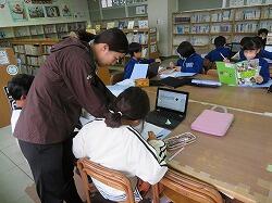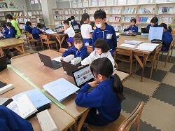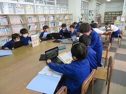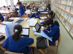 一人一台端末を利用したり、図書室の本を利用したりして調べていました。