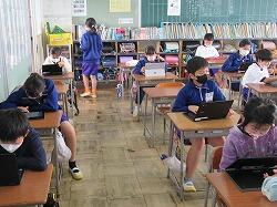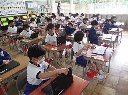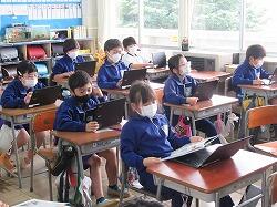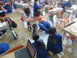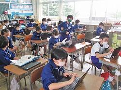 <4年3組> 総合的な学習の時間におじゃましました。4年生は「福祉」をテーマに学習を進めています。タブレットを使って、車いすや点字ブロック、義手や義足などについて調べていました。4年生は、これから、車いす体験や白杖体験、点字体験などを行う予定です。福祉のスペシャリストになってください!