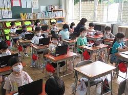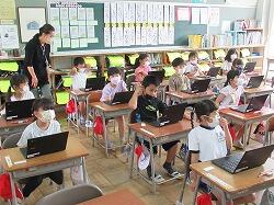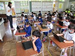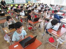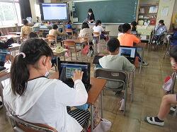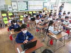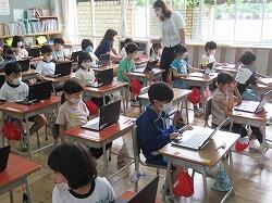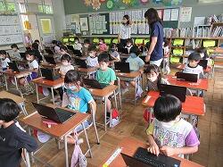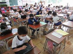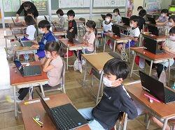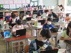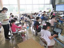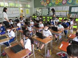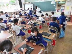 <1年2組> 今日はICT支援員の来校日で、1年生もタブレットを使用しました。一人一人にタブレットとパスワードが配られました。このタブレットはこれからずっと使用します。大事に使ってほしいと思います。また、パスワードも、一人一人に配られています。大事なものなので、人に教えたり、見せたりしないように指導がありました。(ちなみに、タブレットの持ち帰りは3年生以上になっています。)