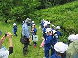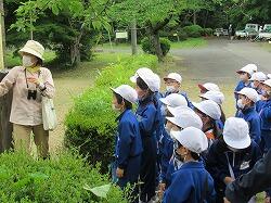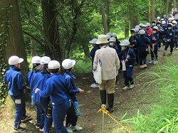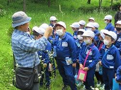 <2年1組> トンボの水辺を回る北コースに向かいました。後半の部分から合流できましたので、トンボの水辺の様子はログインページをご覧ください。子供たちからは、「○○見付けた」という声をたくさん聞きました。散策コースを歩きながら、解説員さんの話をよく聞き、昆虫や鳥、草花を観察していました。