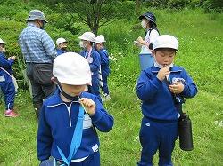 <2年2組> タンポポとバッタの広場を回る南コースに向かいました。タンポポとバッタの広場で合流できましたので、そのときの様子を紹介します。後半部分は、ログインページをご覧ください。広場では、草花を観察したり、虫を探したり、よし笛にもチャレンジしていました。「クモを見付けた」と言っては、人だかりができていました。
