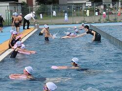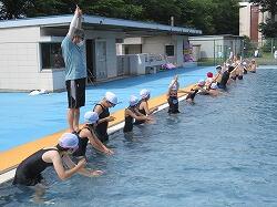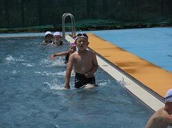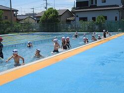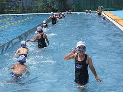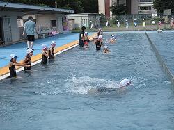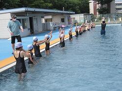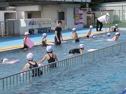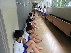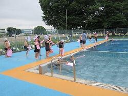 <3年1組> プールでの体育の授業におじゃましました。今年初めての水泳学習なので、水慣らしが中心でした。3年生は昨年泳いではいますが、ほんの数回です。今年も何回泳げるか分かりませんが、泳げるようになってほしいと思います。目標を決めて、1時間1時間を大切に練習してください。