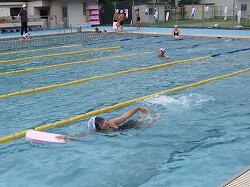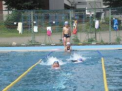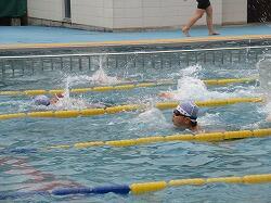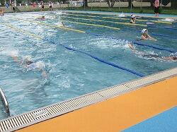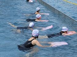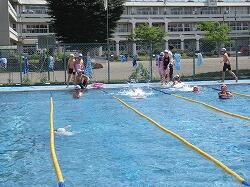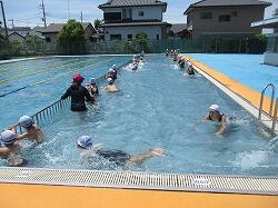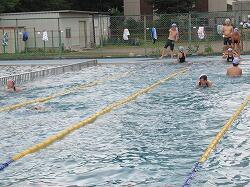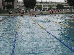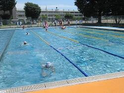 <4年3組> 体育の水泳の授業におじゃましました。蒸し暑い一日でしたから、プールはとても気持ちよさそうでした。数少ない水泳の授業、ここぞとばかりに、25mのコースを何本も泳いでいました。自分の目標を決めて、がんばってください!