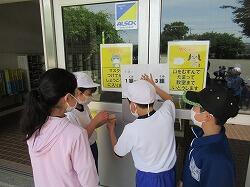 毎朝、正門と東門に生活委員会の児童が立って、あいさつを呼びかけます。