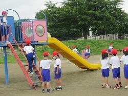 今日は、曇り空で比較的過ごしやすい一日でした。子供たちも元気に外遊びをしていました。