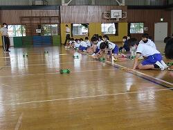 <5年1組> 体育の授業におじゃましました。体育館でソフトバレーボールを行っていました。コロナが落ち着いて、ボールを使った授業が可能となりました。昨年はほとんどできませんでしたので、ボールの扱いもどこかぎこちなさそうでした。でも、とっても楽しそうに活動していました!