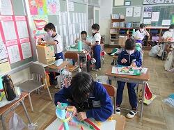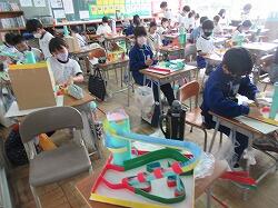 <4年1組> 図工の 授業におじゃましました。「コロコロガーレ」といって、カラフルな厚紙を使って,ビー玉の転がる立体迷路をつくっていました。とても楽しい作品ができていました。