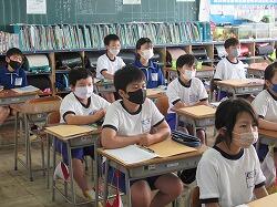 クイズなども交えた話でしたので、クラスで盛り上がっていました。歓声が校長室にまで聞こえてきました。