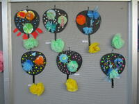 今は、"七夕"をイメージできる掲示物や作品がいろいろと飾られています。