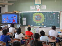 国語で「表し方の違いを考えよう」の内容で、広告を読みくらべて、表現の仕方やその受け取り方についての学習をしていました。子供たちは電子黒板とプリントを使って、一生懸命に勉強していました。