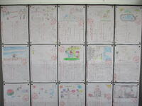 どの作品もそれぞれの詩の内容やイメージを子供たちの感性でとらえ、子供たち一人一人が詩を読んで想像した世界観を色鉛筆やクレヨンなどを使って表現していて、個性あるオリジナルな作品に仕上がっています。