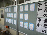 今回は3年生の廊下に掲示してある3年生の作品をいくつか御紹介いたします。