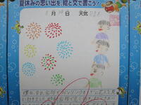 1年生は今日も登校してくると、水道で水を汲んで一生懸命に朝顔に水やりをしていました。教室には大事に育てている朝顔の観察記録も掲示されています。