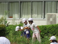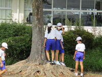 今年は例年になく暑い日が続いていて雑草が伸びるのも早いのですが、いつも用務員さんが除草をしたり落ち葉や枝を片付けしたりしてくれています。