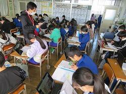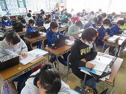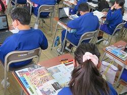 一人一台端末を利用したり、教科書や資料集を利用したりして調べていました。