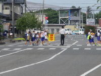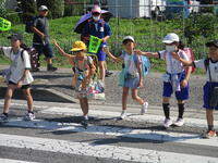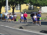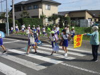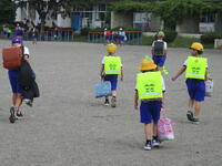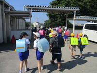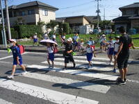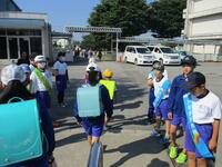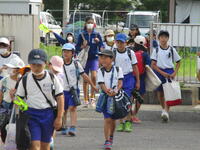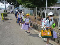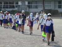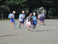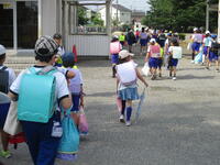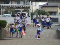 登下校班ごとに整列して、班長が「気を付けて帰りましょう!さようなら!」とあいさつすると、その後に続いて登下校班の東っ子たち全員で「さようならー!」と元気のよいあいさつをして下校して帰って行きました。