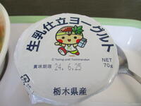 真岡東小学校の今日の給食は、「栃木県民の日給食」で、メニューはとりそぼろ、卵そぼろ、ほうれん草、県産みそ汁、栃木県産ヨーグルト、三色ごはん、牛乳で705Kcal(中学年)でした。