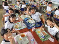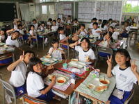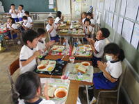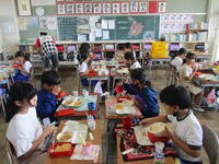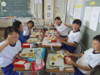 4年生の東っ子たちは[「今日の給食もおいしいです!」と言いながら、今日もおいしそうに給食を食べていました。