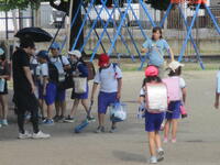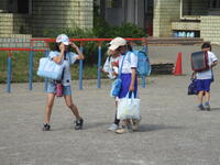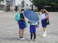 東っ子たちは今日も元気に登校してきました。プールに入る準備を持ってきている東っ子もたくさん見られます。