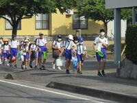 東っ子たちは今日も元気に登校してきました。水筒を持って、半袖短パンでの登校も多くなっています。プールに入る準備のバックを持ってきている東っ子もいます。