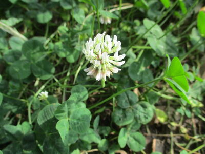 校庭の隅に"シロツメクサ(クローバー)"が咲いていました。