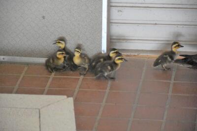 今朝早くには、珍しいことですが、西昇降口に「カルガモの親子」がやって来ていました。カルガモのお母さんは真岡東小学校が子ガモたちに安全・安心な場所だと思ったのかもしれません。
