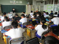 英語専科の先生とAETの先生、そして今日は英語指導力向上専門員の先生の3人での授業でした。