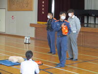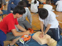 先週金曜日の放課後に、芳賀地区広域行政事務組合消防本部の方々に来校していただいて、「救命救急法」の職員研修を行いました。