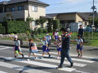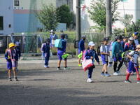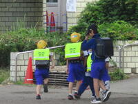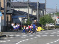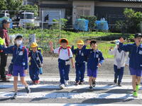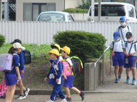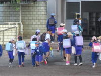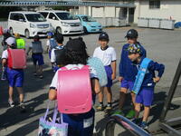東っ子たちは登下校班ごとに今日も元気に登校してきました。