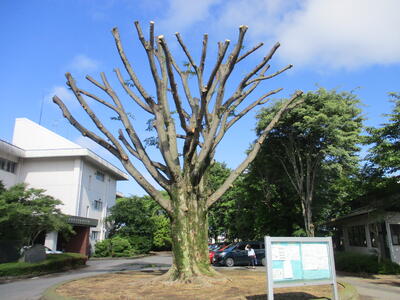 真岡東小学校のシンボルである職員玄関前のロータリーにある「大欅の木」の伐採を行いました。
