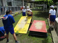 今日の東っ子たちは業間の時間には外に出て元気に遊んでいます。ジャンピングボードを運んでいる運動委員会の東っ子や学校農園で栽培している野菜に水やりをしている東っ子もいます。