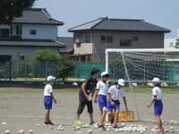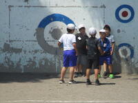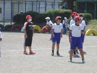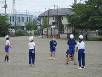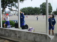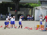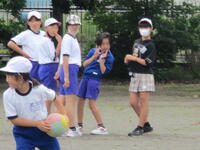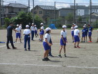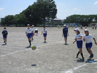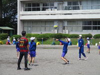 4年生の東っ子たちは一人ずつ順番に、先生の笛の合図で一生懸命にボールを投げていました。