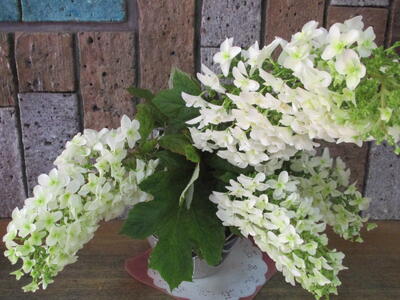 「白いアジサイの花の名前は、カシワバアジサイと言うんですよ。」と教えてくれた先生もいます。