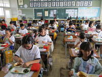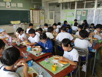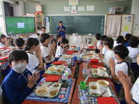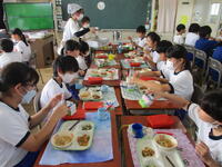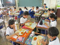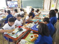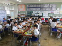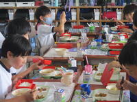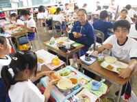 6年生の東っ子は「今日のメニューもおいしそうです!」などと言いながら、おいしそうに給食を食べていました。