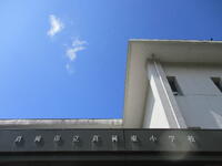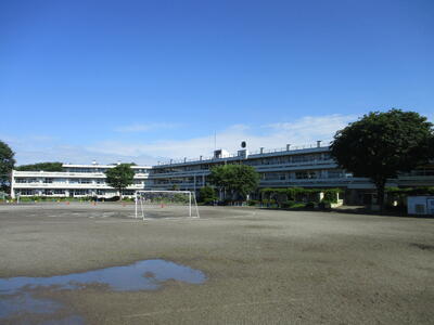 校庭にはまだ水たまりがありますが、きれいな青空です。