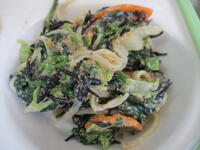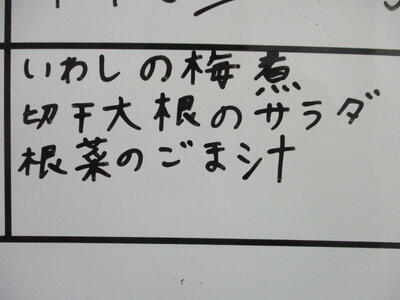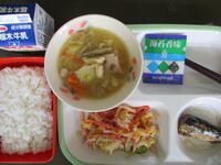 今日の真岡東小学校の給食は、いわしの梅煮、切干大根のサラダ、根菜のごま汁、ごはん、のり香味、牛乳のメニューで、655Kcal(中学年)でした。