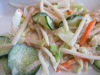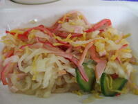 今日の真岡東小学校の給食は、スタミナラーメン、国産ポークしゅうまい、中華サラダ、ミニメロンゼリー、牛乳のメニューで、ちょうど600Kcal(中学年)でした。