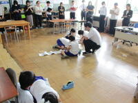 真岡東小学校の先生方は、真剣に救命救急法の実践演習に取り組んでいました。