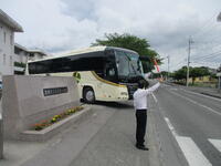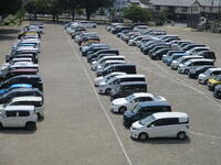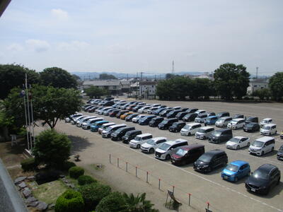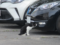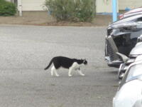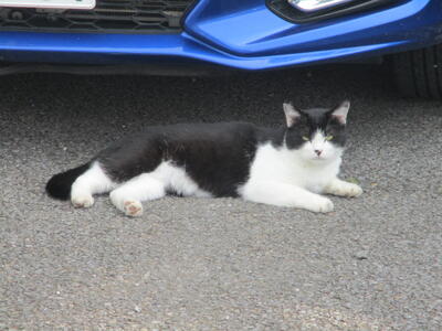 今朝は先生方の駐車場をゆっくりと歩いて1台ずつ点検?していました。