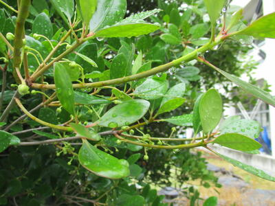 雨に洗われた葉に透き通った水滴がたくさんついていました。