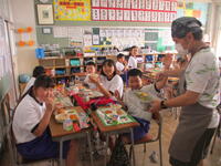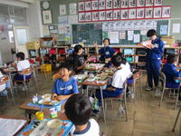 今日は「ハーモニータイム」があり、読み聞かせボランティアの方々に来校していただいて、2年生、4年生、スマイル学級で読み聞かせをしていただきました。