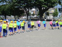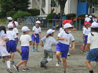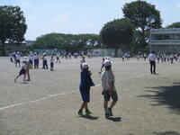 今日の業間の時間は「ふれあい班活動」で、縦割り班ごとに東っ子たち全員が校庭に出て、それぞれの班ごとに1年生から6年生までが一緒になって遊びました。