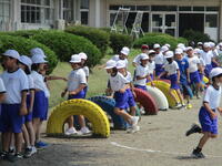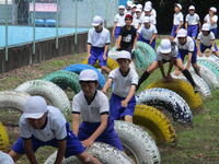 東っ子たちは、学年ごとに決められた体力つくりのメニューにしたがって、がんばって、そして楽しそうに取り組んでいました。