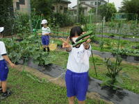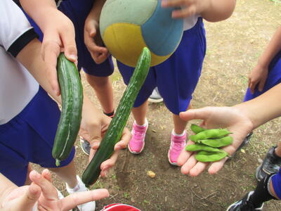 今日は学校農園からキュウリと枝豆が収穫できました!